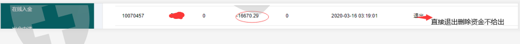 3.13号平台锁仓不让平仓导致盈利从5000变成15000 现在出金直接不 本周一3.16出金直接显示退出扣除我所有正常盈利。这样的平台 黑黑的 他妈的毫无底线