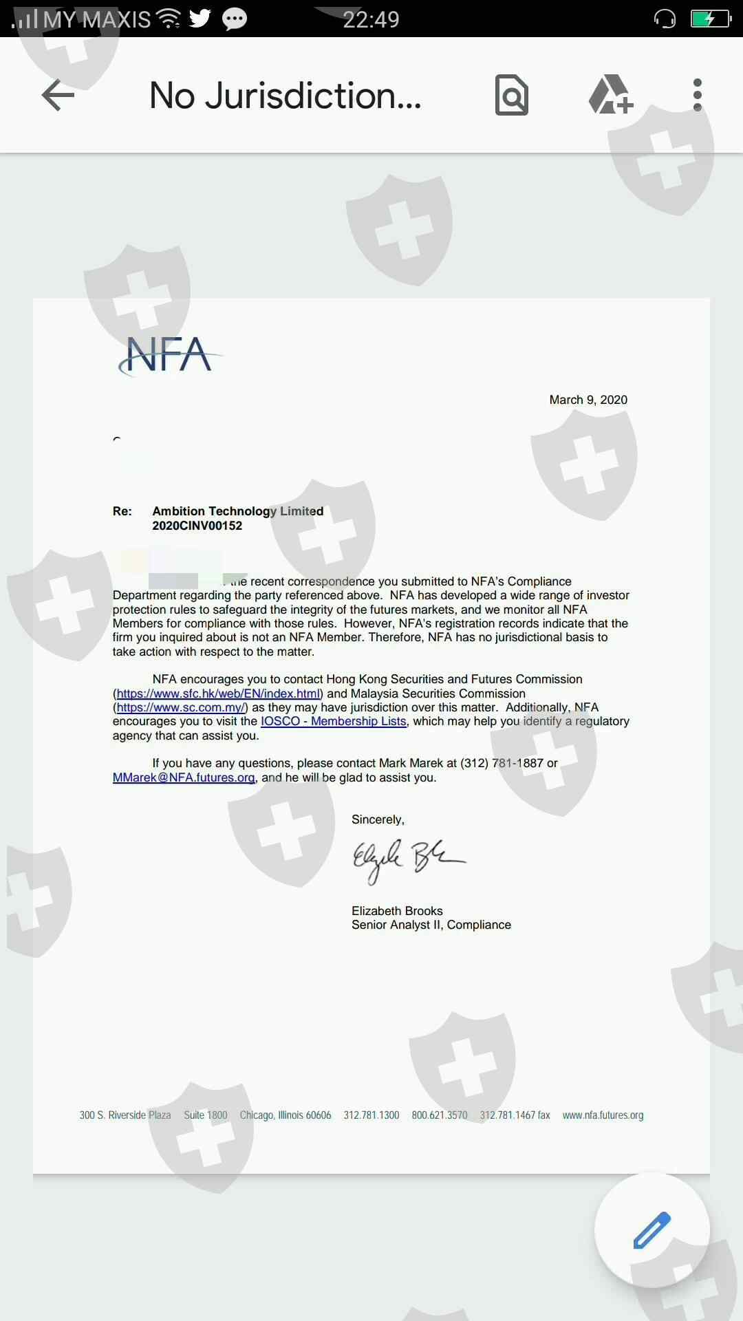 黑平台一个,付了佣金保证金,做个样子出金。没收到钱,2020年1月15号50k美金扣除后下落不明。ambition 没地址,nfa证实没监管,还有马来西亚第3方收佣金保证金的户口,收了真钱,扣除了mt5本金做做样子。请小心