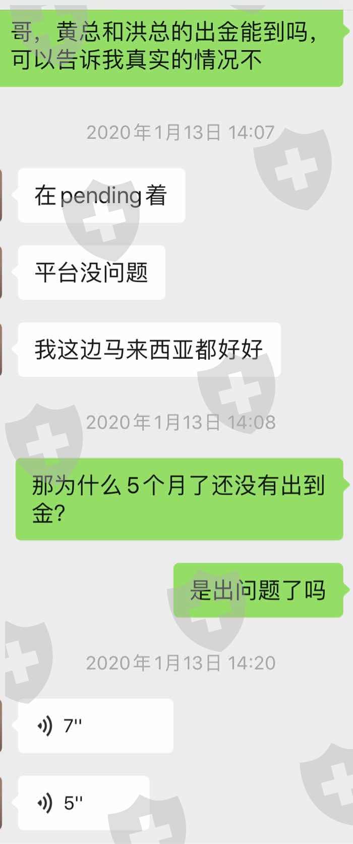 从19年9月份开始申请的出金至今仍没有收到,和平台的经纪人多次沟通,一开始一直说没问题的,可以出的,到后面又说因为外汇境外监管严格钱币商还在换汇中,再到后面还是出不了,就说是平台退出中国市场,要我使用新方案,新方案非常不靠谱,还得重新入金做够手数才能把原来的资金出回来,万一入了又出不了又亏大了。。望有关团队可以帮一帮我追回资金,非常感谢