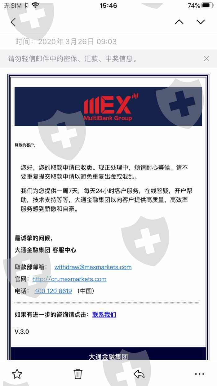 3月26日出金,收到回复,30日以各种理由不出金,推脱责任,请大家不要在大通金融注册交易
