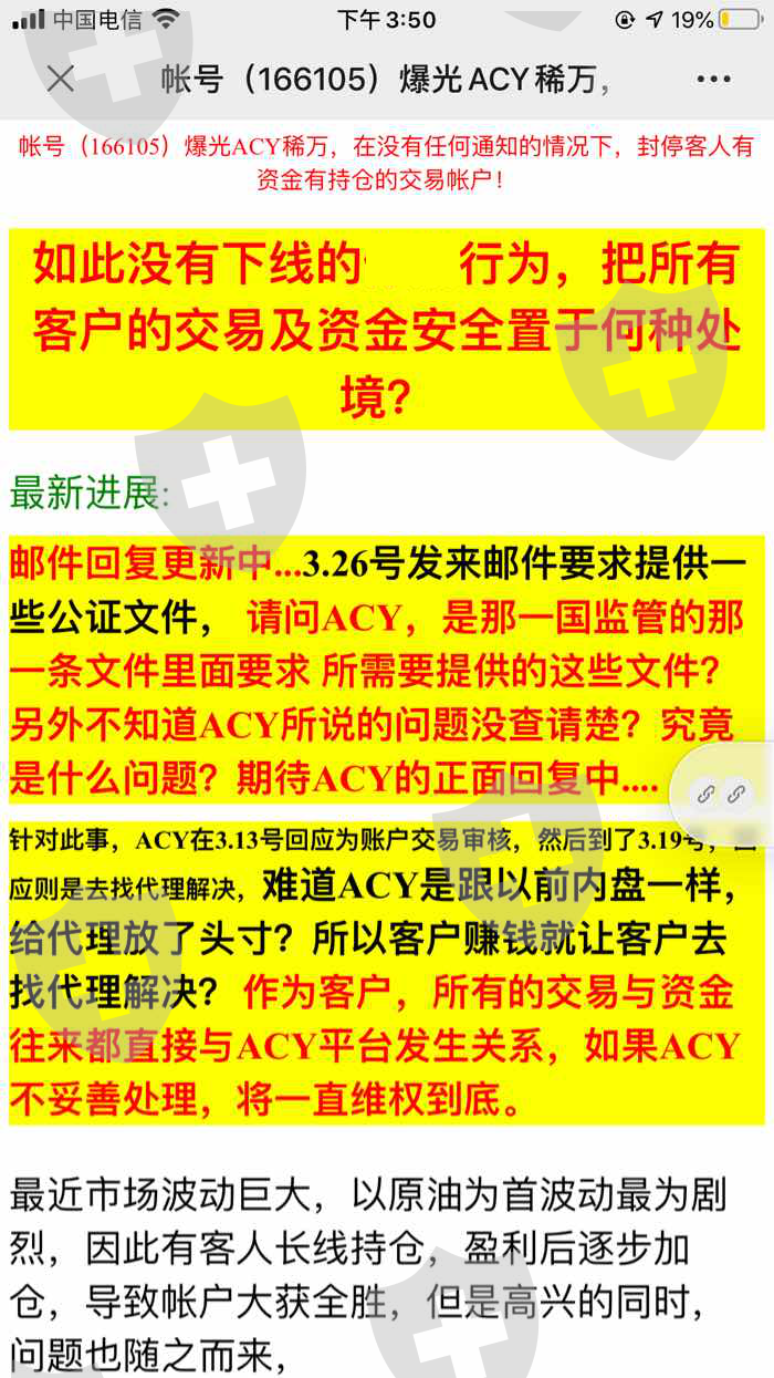 ACY盈利账号被封、客户只能亏损不能盈利