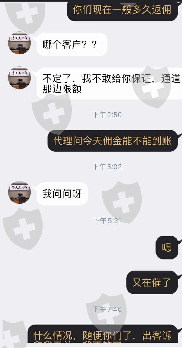 不给代理返佣,之前说是日返后来就各种理由拖欠,专吃客户本金!