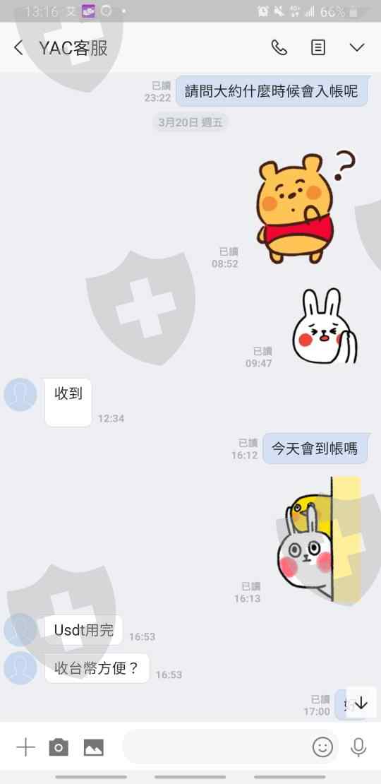 3/16申請出金後,選擇同入金方式,請客服轉至加密貨幣的電子錢包,客服聲稱USTD幣用完,要使用國際匯款,但至今兩星期都沒收到帳款,再詢問客服已無人回應且消失。