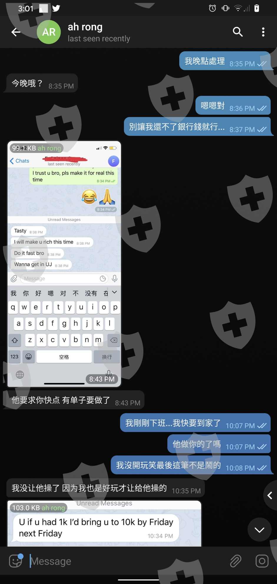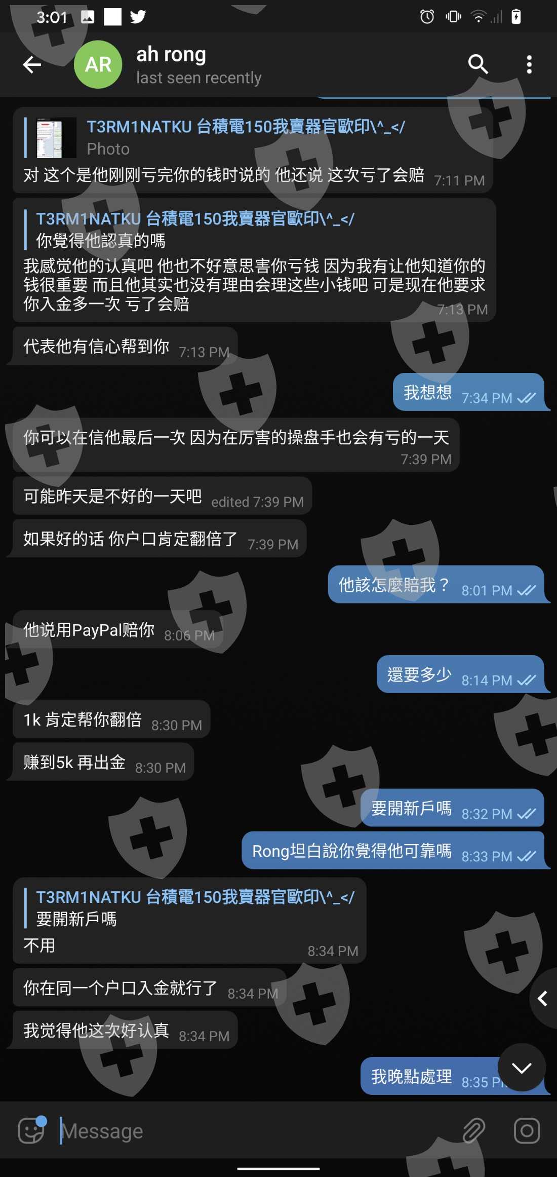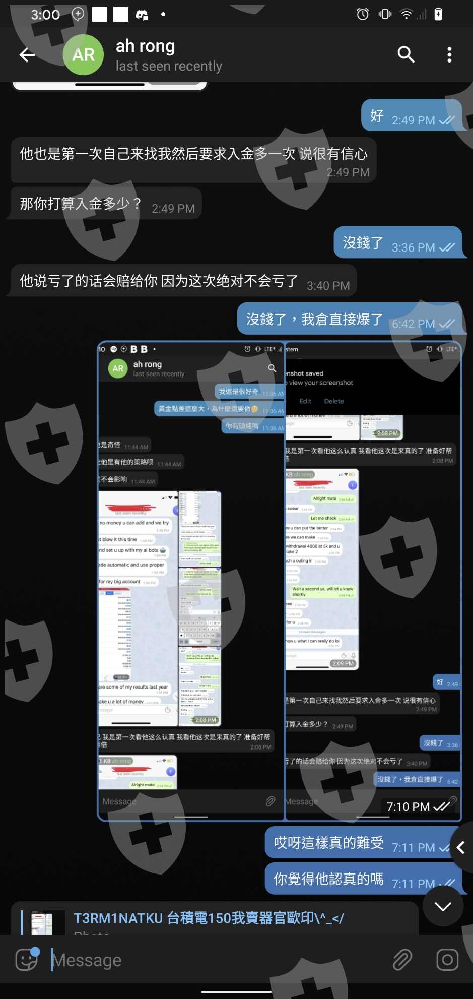 已爆倉一次又讓我再入金 說這次認真的 賠錢會賠結果又再爆一次人直接溜了估計這經理跟那操盤的同夥後續經理卸責到是很熟練