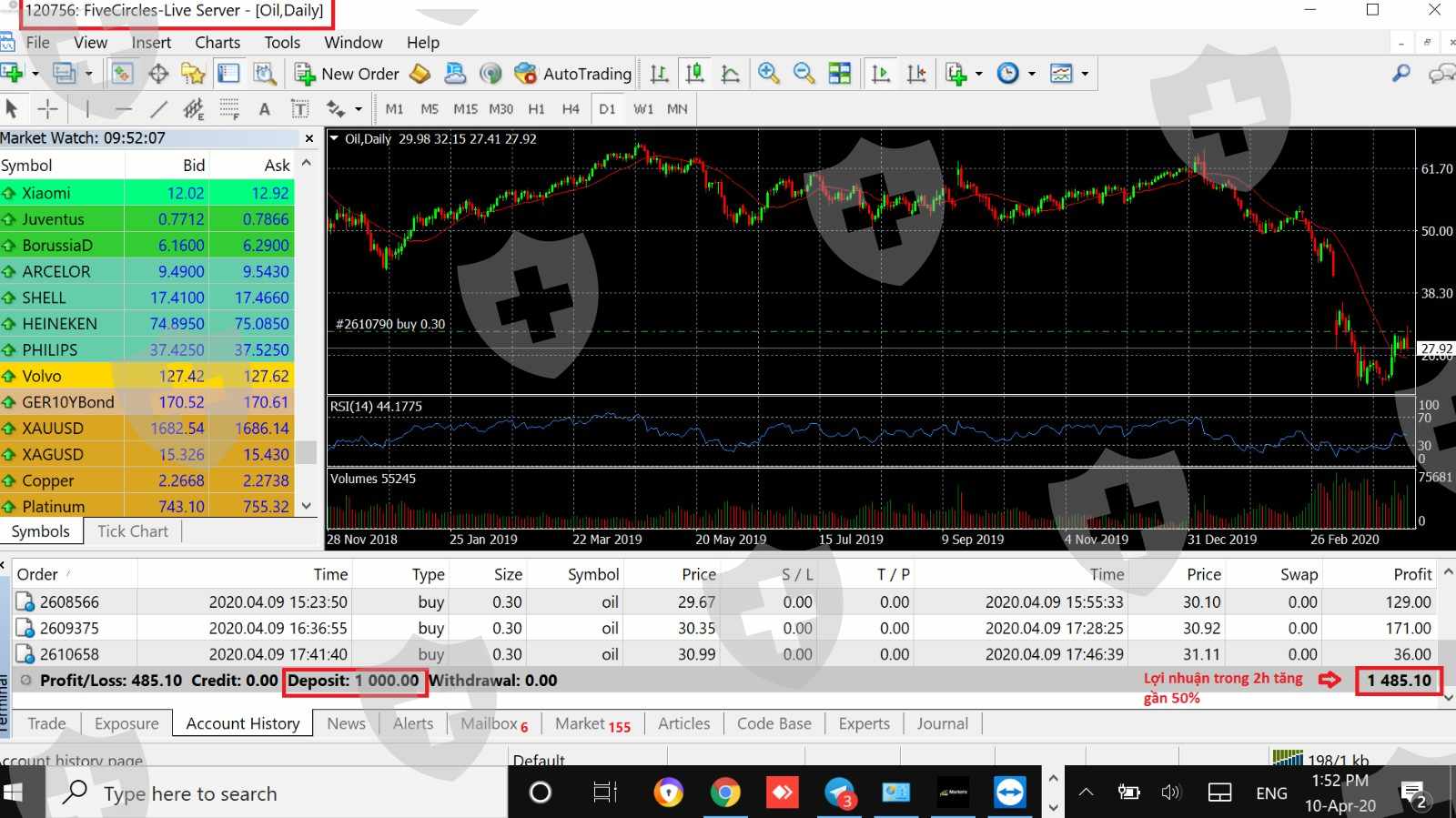 Bước 4 : hắn thuyết phục bạn mua/bán, ban đầu sẽ có lợi nhuận.