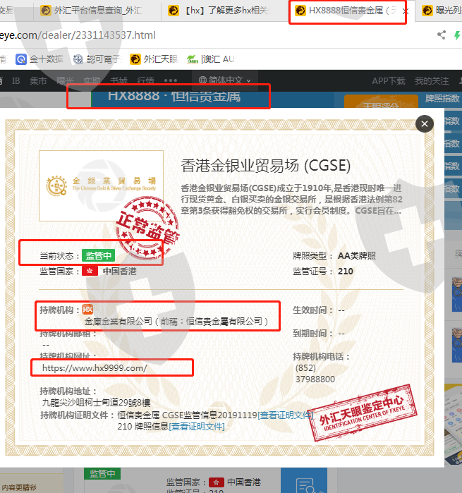 我有点不明白,明明是一个运营10年的交易商,PC版软件和手机APP运行也都可靠,点差也不算高,我使用了一段时间感觉还很好,按理说应该会得到用户的认可的。可是为什么要更改名字?为什么要套牌NFA牌照?为什么要更改官网链接网址?如果不更改名字,不更改官网网址,不套牌NFA牌照,只使用cgse牌照,那么相信在外汇天眼中也会获得好评的。图片中的交易商名字和官网网址现在叫华鑫投贵金属,其实都就是之前就是的恒信贵金属,因为无意中知道了外汇天眼,查看后看到评分这么低,之前又看过一些负面报道,本来软件和APP使用的都很满意,但是心里的疑虑还是很多,所以今天决定暂时不用这个平台交易了,先观察一段时间再说。