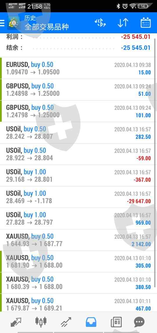 4月13日原油出现了不能止赢,在不能止赢的情况下然后我手动平仓了一手,结果以-1.178给我成交然后爆仓出来,然而爆仓的同时另外四个单子却是正常的交易价格,再后来就把我锁了交易帐号踢出了平台,这礼拜一说是已经向有关部门反应了情况上传了资料,到现在没有回应。所以我希望通过爆光,能收到公平公证的回复