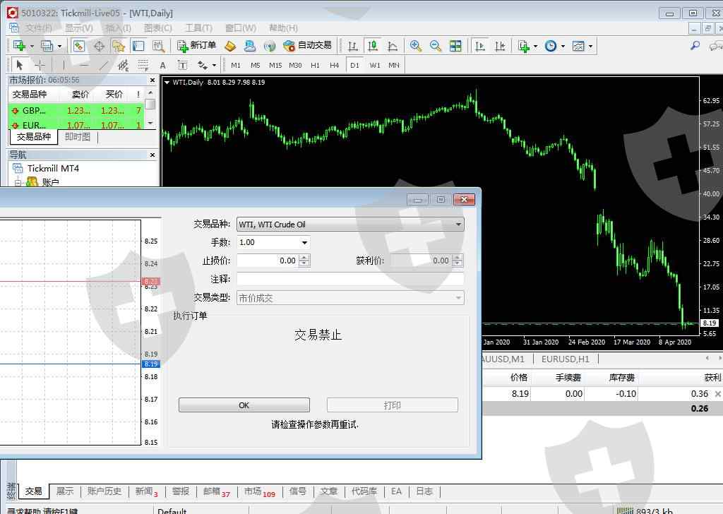 Tickmill 后台操控原油价格和走势图,违背市场走势,随后禁止原油交易