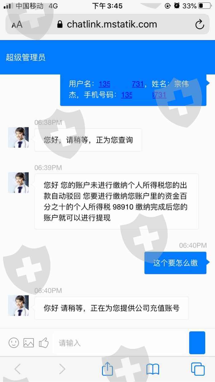 黑平台入金就不理人。出金不回复。500本金都不出,好多业务现在推这个黑平台。大家注意了。本金进去就不会再回复的。
