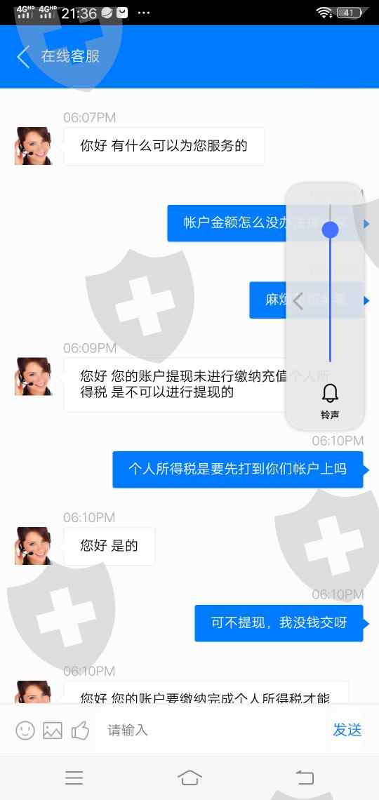 我4月14日在平台准备提现,平台客服要我先交10%的个人所得税到其指定的帐户,平台有余额,应该可以直接扣除,协商至今,未能提现,以前可以可以联系的“在线客服”现却无法点开 ,我该怎么办,求助