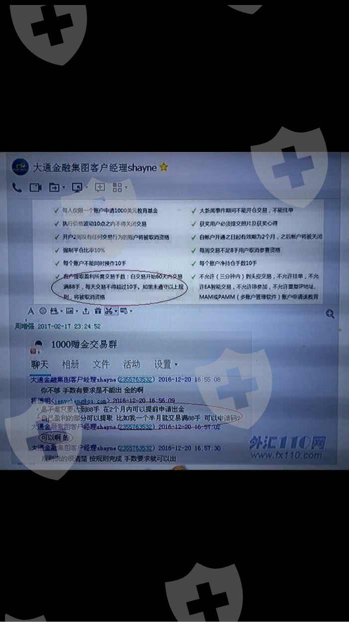 改规则顺序最后的出金规则是每周无交易才取消资格,只有那一张带有每周交易不足8手取消资格,每周交易不超过10手是和那个姓周的截图一样那张图,我发的右下角带有日期是2016.12.16日,后来官方回复也说了那张图是针对12月15日之后注册的用户,说他的交易开始日期是12月12日,当时规则就是我发的带有100手那张截图,12月7号规则你们大通金融博客都有,在