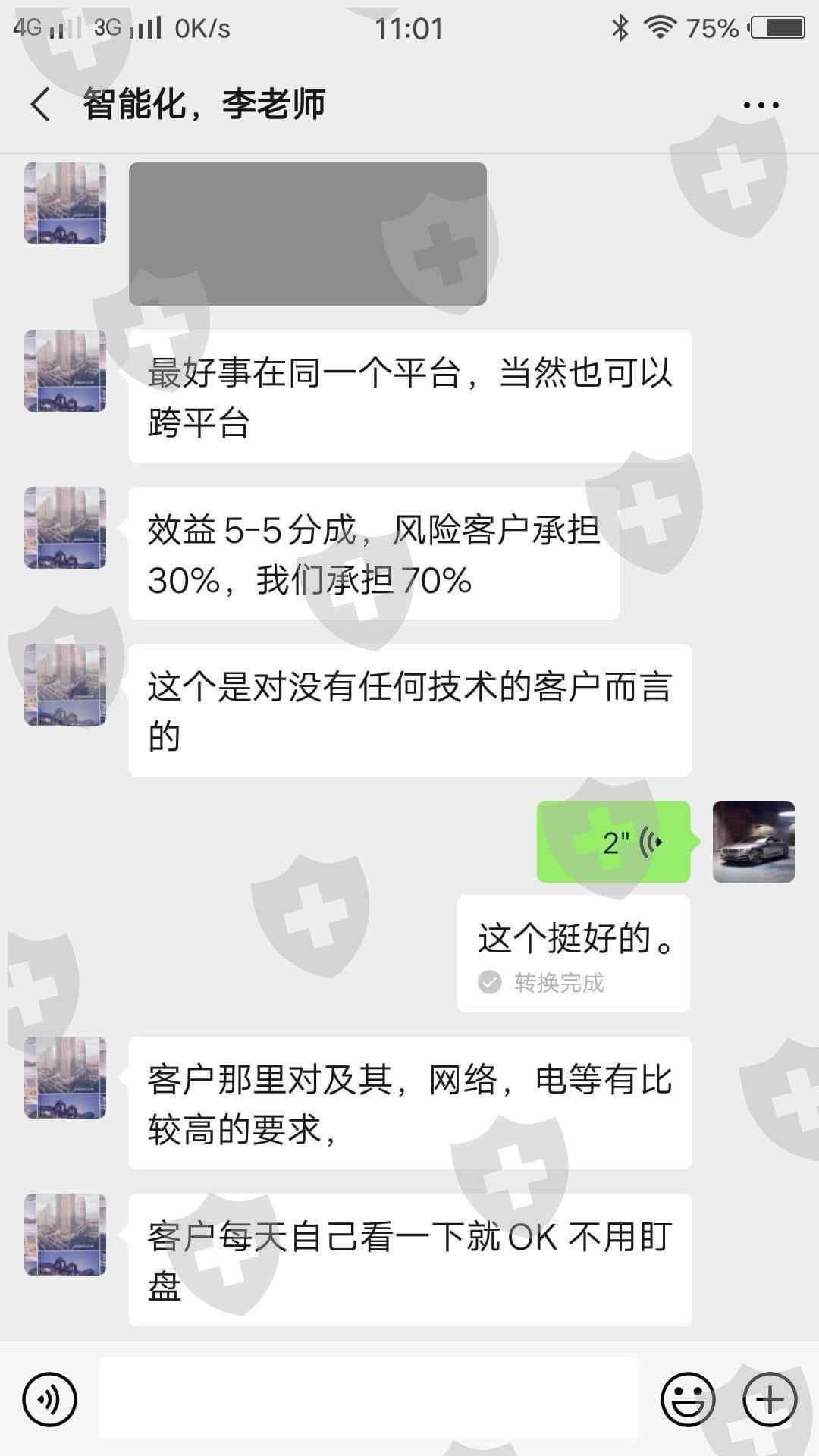 我于2019年11月13日和平台业务员及操盘手在青岛万达广场饭店见面,之前带单老师说这个很赚钱很赚钱,大约两周就能把投资的成本赚回来,之后带单老师又在微信和打电话跟我沟通,说这个行业很赚钱,比任何实体行业都赚钱,说平台业务员负责资金入金和出金和平台一切问题,带单老师负责操作账户,负责技术,大约两周就把成本给我赚回来了,平台业务员和带单老师同时与我见面吃饭,说技术好平台好,我只管投资保证我赚钱。我与2019年12月6日入金70700元让带单老师操作,之后带单老师以各种理由让我补钱,我又相继入金35000元,总资金105700元,之后账户一直亏损,大约一个半月时间亏损还剩几千元,截止2020年2月27日爆仓,仅仅用了两个多月相互的钱全亏没了,当时业务员和操盘手说如果亏损严重他们承担70%,现在业务员和操盘手都联系不上。给平台发邮件也不管。