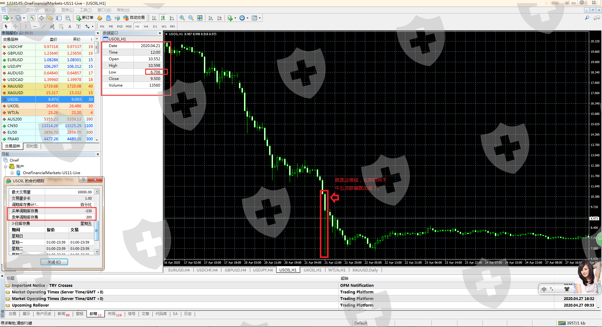 欧福市场恶意压低现货原油报价,拉爆我的账户