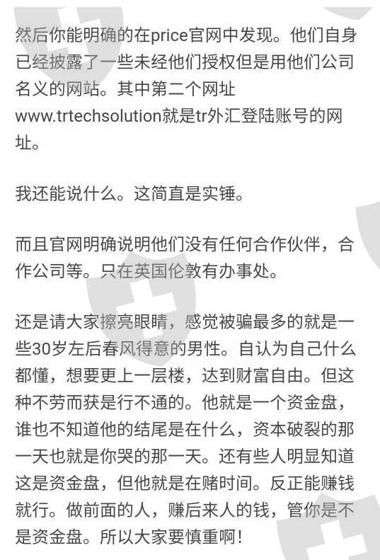 tr外汇一直宣导他们的单子是通过pricenarket进入国际市场交易的,其实关于两者的关系,大家可以去看一下