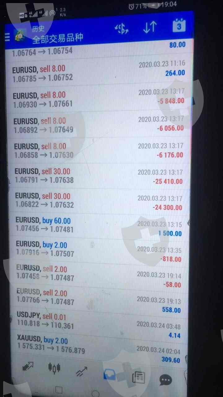 瑞讯银行大骗子,说帮我做单赚钱,赚钱的时候我想出金,代理一直打推迟,代理叫我不要出金,说有大行情,一直是他们给我做单,结果一小时亏损70000多美金,看他们的做单记录,完全不理智,在一个点位使劲加仓,完全是故意把你账号做亏损,爆仓了,血本无归,大家千万不要被这样的平台骗了,我把交易记录发下面给大家看