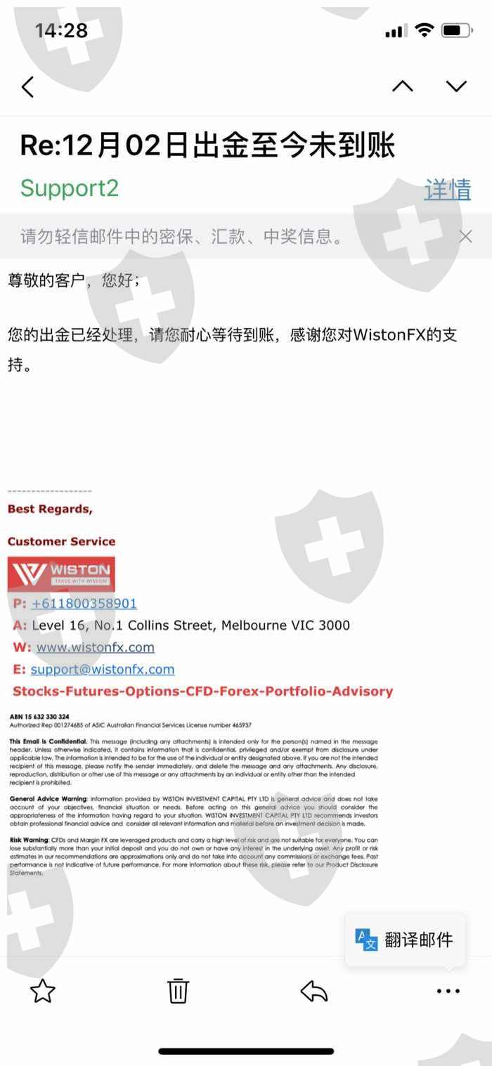 在威石19年12月份出本金,已经20年5月中旬了资金没到账,给威石发邮件各种推辞,最后邮件也没有回复。希望能还我一个公道,追回本金。