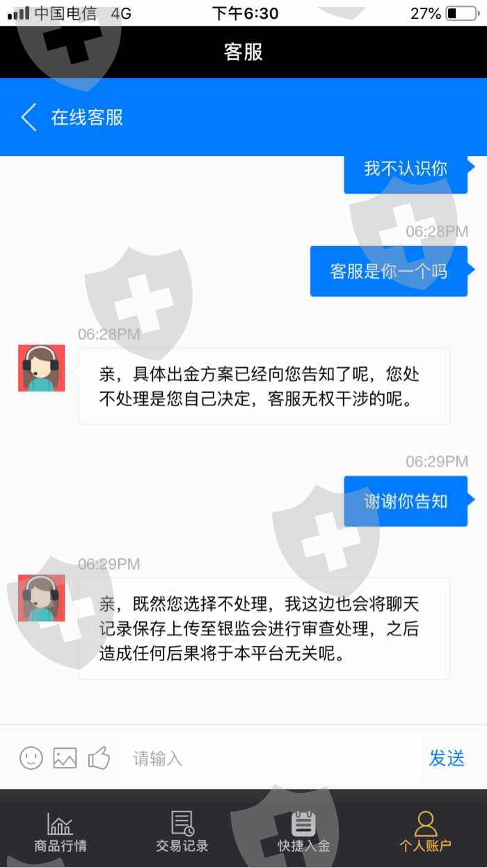 我的五月一号到现在都没有出金,平台也是以各种理由让交保证金和提高信用分为由