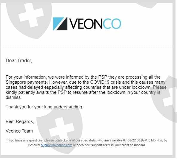 Hi all,I initiated my withdrawal one week ago as of 13th May 2020. It was stated very clearly that it will take between 3-5 working days. However, as of 20th My 2020, I received this notification from Veonco. I think this is very unprofessional. Moving forward, I do hope that they hold true to their words.RegardsUser