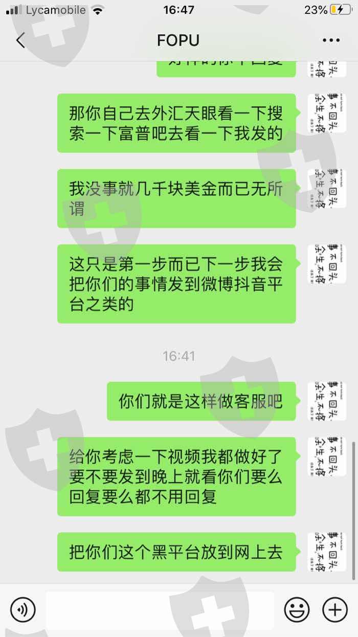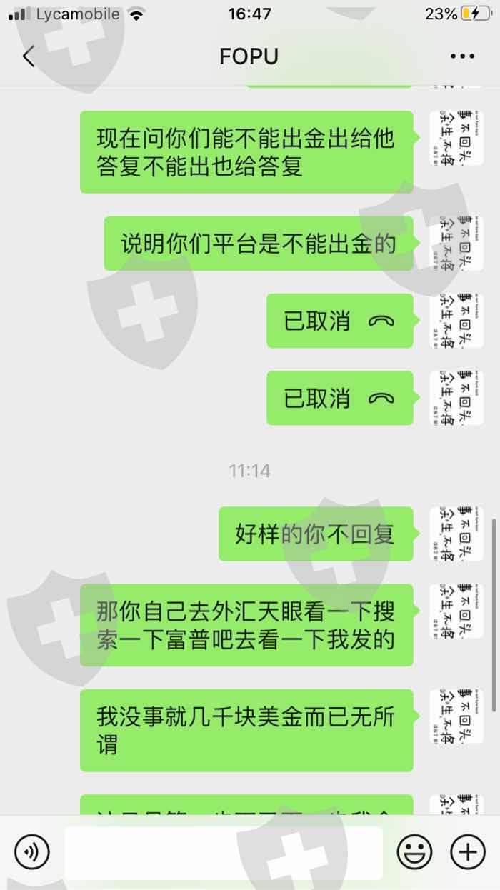 富普这个平台不让人出金联系客服一天了都没有答复意思就是不让人出金入金可以出金难大家小心