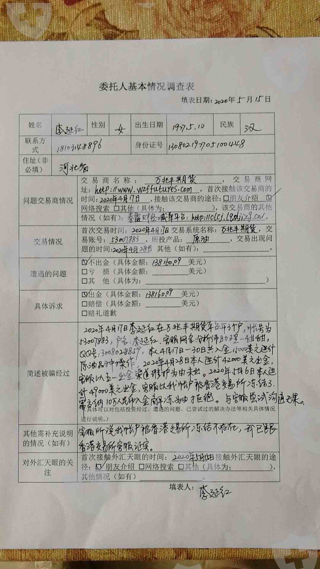 万兆丰期货纯黑平台,无法出金,客服给的地址都假的