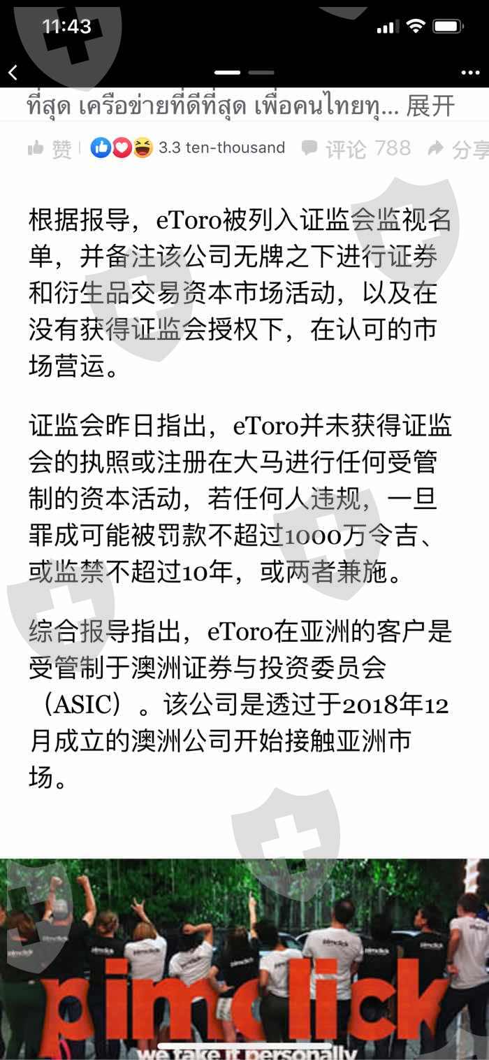 提供的个人和实体信息不符…根据报导,eToro被列入证监会监视名单,并备注该公司无牌之下进行证券和衍生品交易资本市场活动,以及在没有获得证监会授权下,在认可的市场营运。