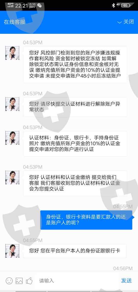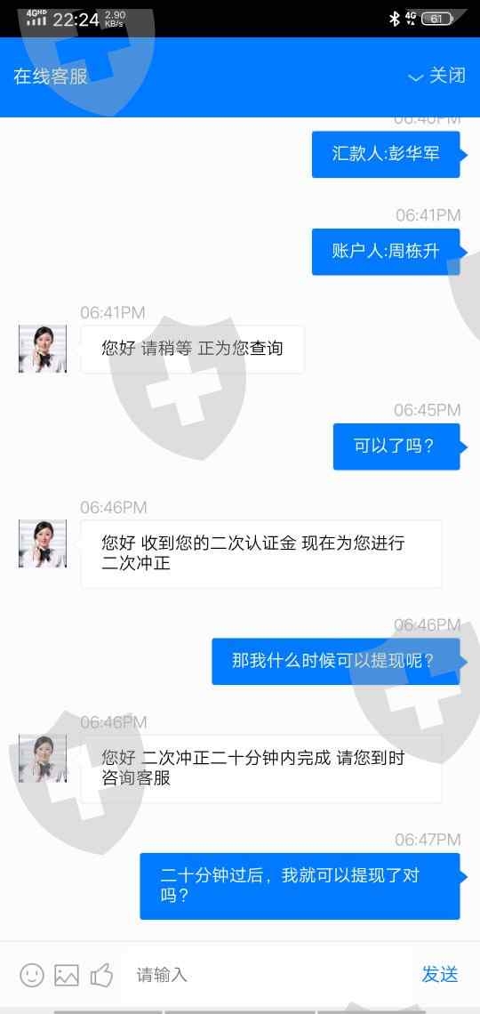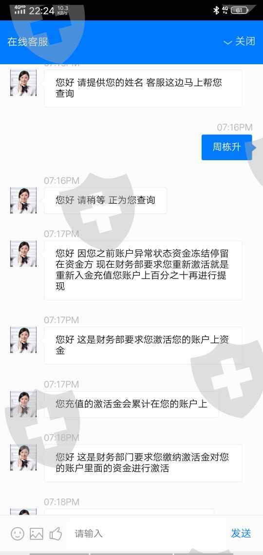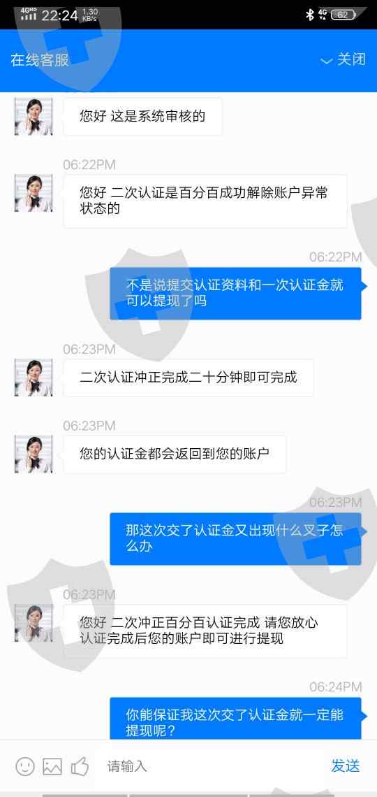 投入一万后,盈利了9万,准备提现时平台客服人员说账户被冻结不让出金,让交账户余额10%的认证金,交了一次后说还差10%才能认证通过,又交了一次认证金,说交完这次100%能出金,结果第二次认证金交完,又说财务没审核通过,需要在缴纳账户余额10%的激活金才能出金,又交了激活金,结果说不行,还需要二次激活,一次次的套路,我要曝光兴集国际这个黑平台,亏损本金6万,不要在相信这个平台了!