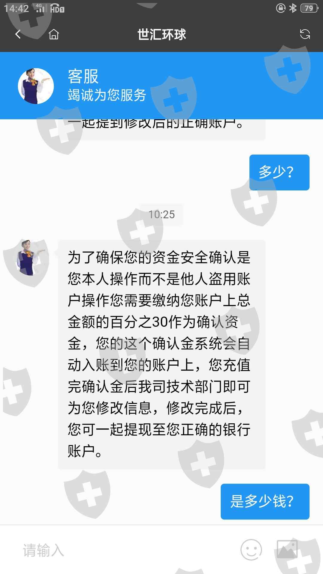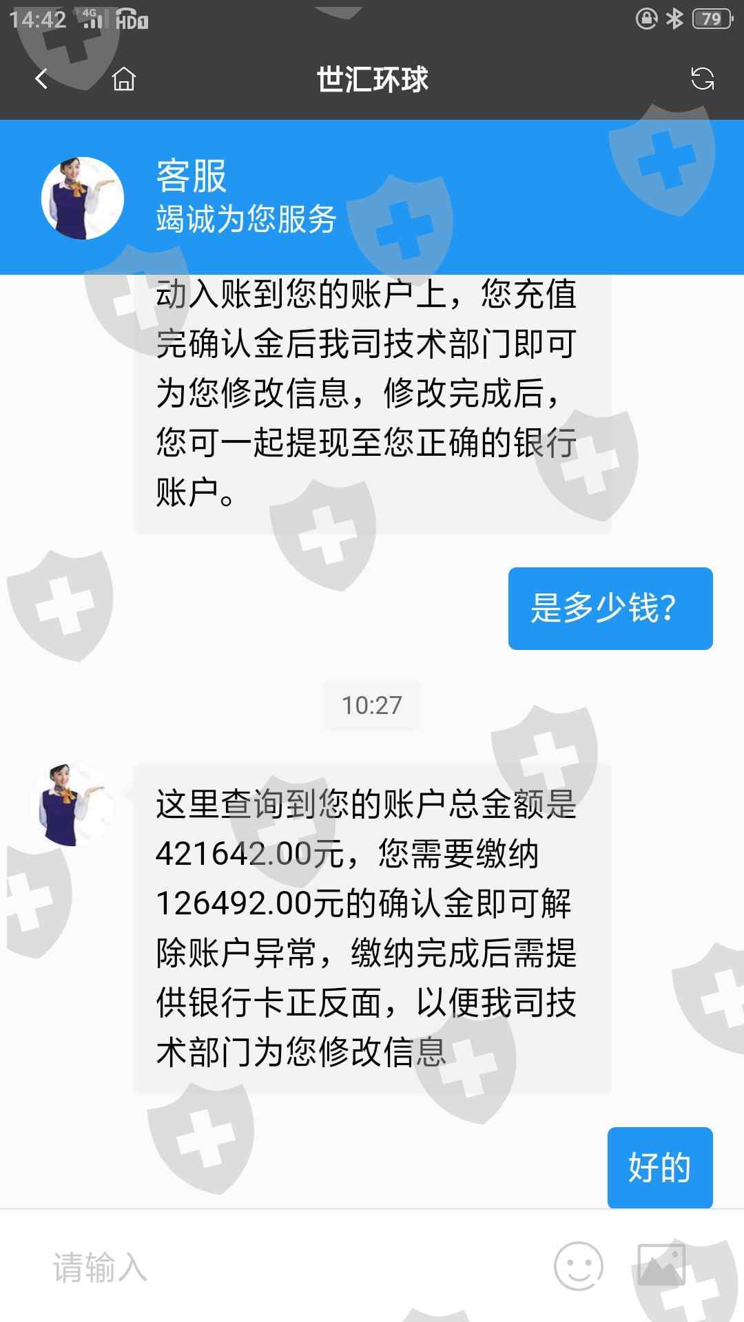 2020年5月28号下午我在世汇平台充值了125642元,然后到了晚上我提现,客服就说我的银行卡号错了,我说让客服帮忙改一下卡号,客服说不行,要我还要在充12万进去才可以帮我改银行卡号。