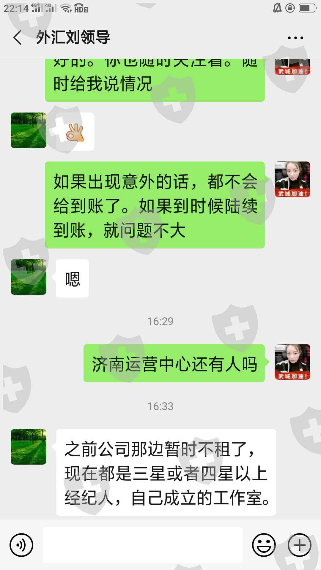 从四月份到现在出金一直不给审核,各种理由推托,山东这边高层经纪人全躲起来不敢露面,所有的群都给解散了。济南的运营中心也给关闭了。