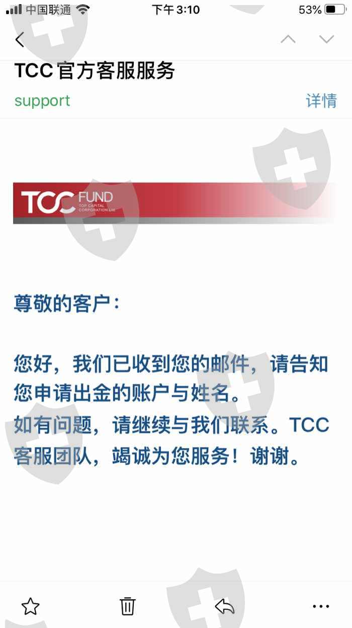 在此平台入金11万2,亏得只剩3万多不做了申请出金,款扣了可资金一直没有到我账户,真是吃人不吐骨头!发了几十封邮件只回了这一次,再无音讯!真是没天理了!
