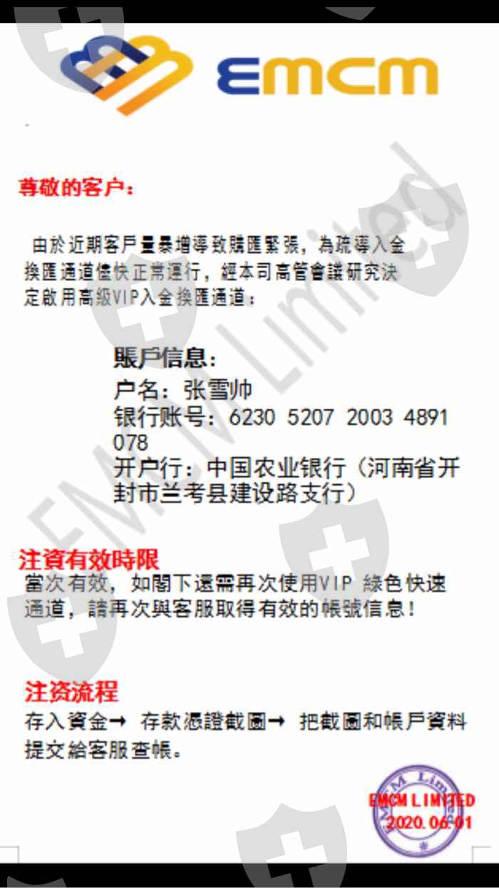 我与前面的朋友是一样的,我也是跟着讲武堂苏定邦,磐老王岩,金刚导师和刀锋导师操作的伦敦金,全部亏损,本身不懂,也不愿意参加伦敦金的操作,因之前跟着做股票,看着操作股票挺好的,说想参加春雷行动标的必须服从命令去操作伦敦金,否则春雷行动标的的指令不会告诉我们,微信群里把开户总监金总监的微信推荐给大家,让找开户总监金总监开户,开户入金时钱转入金总监给的个人账户,开户行是河南的一个账户,当时问教官,教官说她也是这么操作的,由于太相信他们了,跟着入金了,先锋二队由磐老王岩带队,之前每天都在直播间喊单,先锋二队操作时直播间暂停,说微信发指令,怕走漏消息,但指令都是反向的,第一单有止损位,后来的操作指令止损位都没有了,两天50万人民币就亏的没有钱了,说周五的大非农数据会带我们挣回来,让继续入金加大底仓,我也想翻本可无奈借不到钱了,用剩下的8千美金跟着做,周五的数据也是反向的,就这样都亏的差不多了,后觉得不对劲,后来查询这个平台不受监管,出金也是另外的个人账户打过来的,这是属于违规操作,希望能反馈问题,彻查一下,到目前为止几位老师再也没有在直播间出现过,真的被他们骗了,怎么活呀?