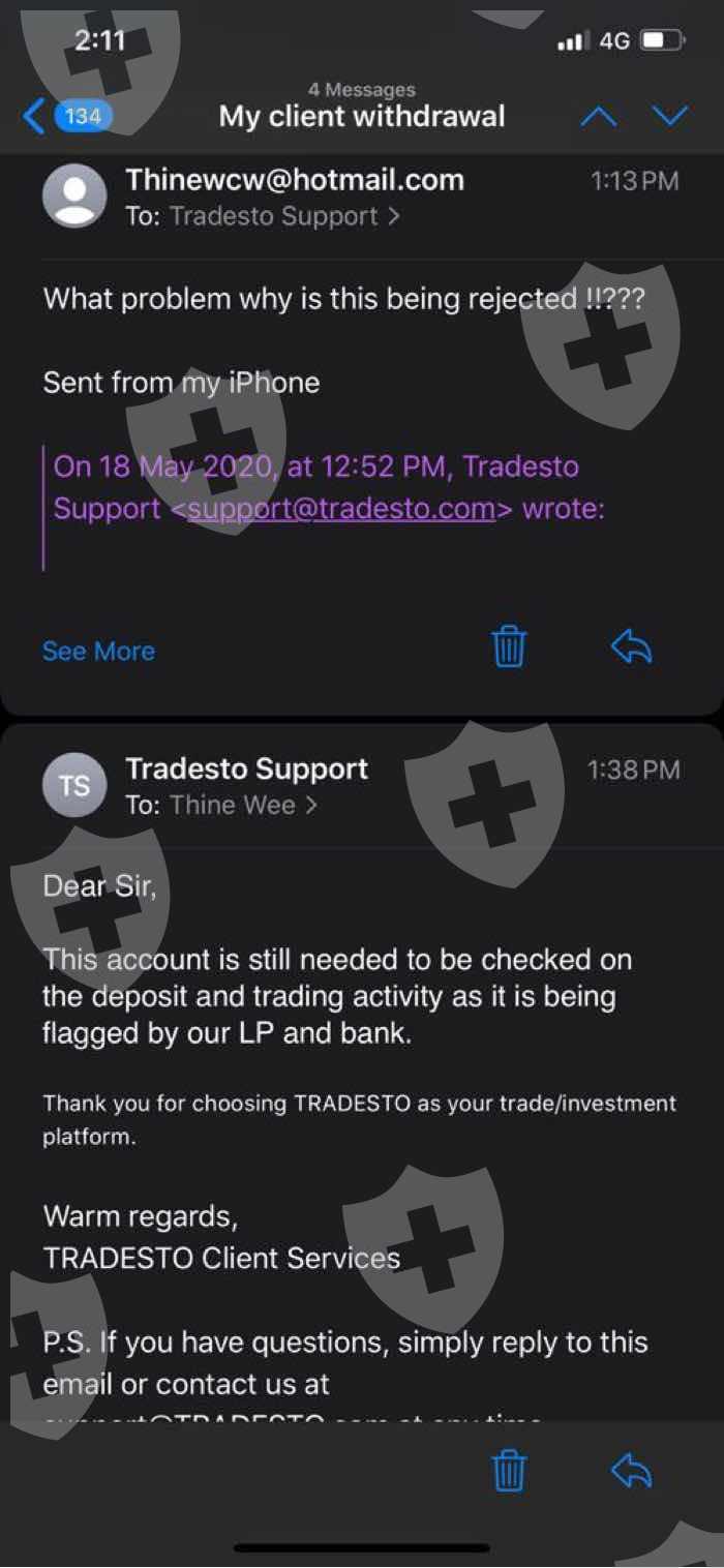 Below is the evidence i can provide to proof my statement, i have been waiting for so long to withdraw my funding yet TRADESTO kept on entertaining me with excuses instead of informing me how long i should wait to get back my funding .