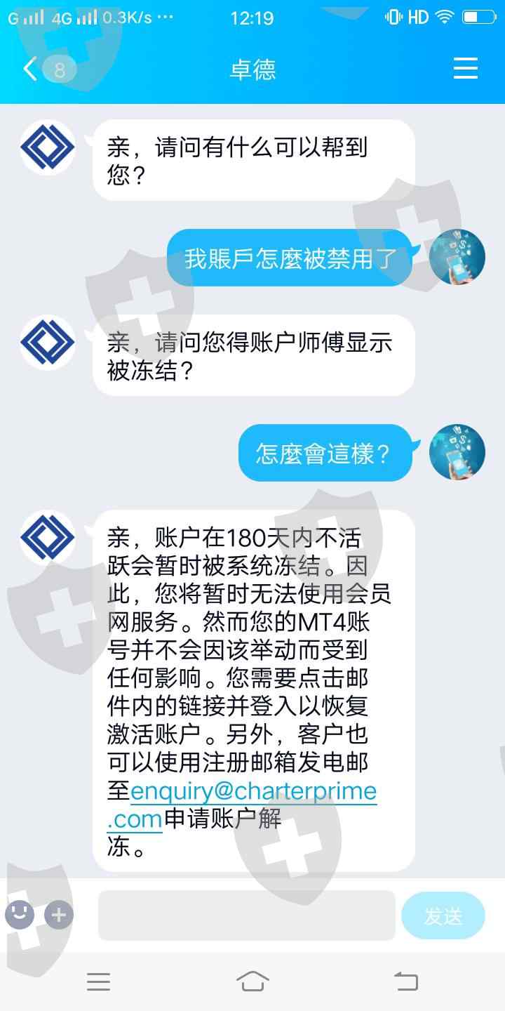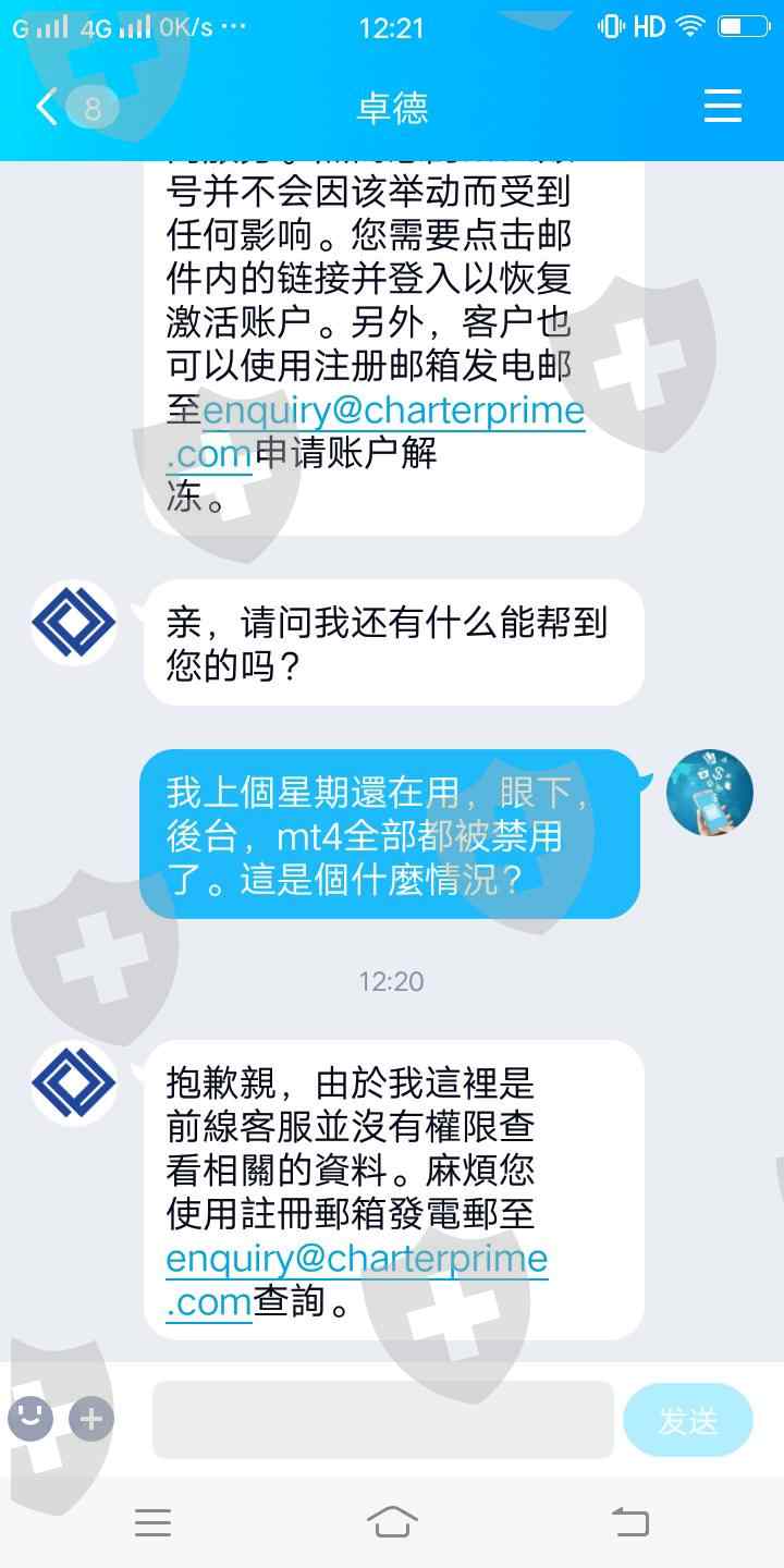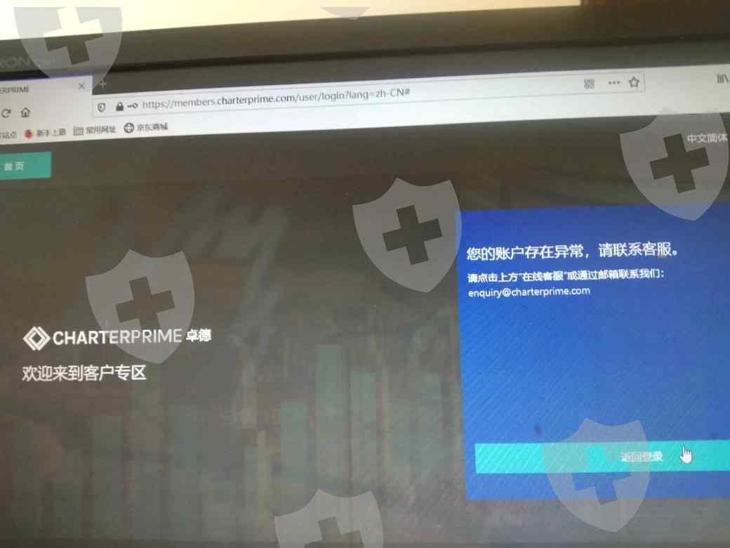 卓德平台隨意禁用客戶賬號,手機端,電腦端無法登陸mt4 甚至網站【客戶專區】 後台都近不去,顯示賬號存在異常,這樣的平台謹慎遠之。
