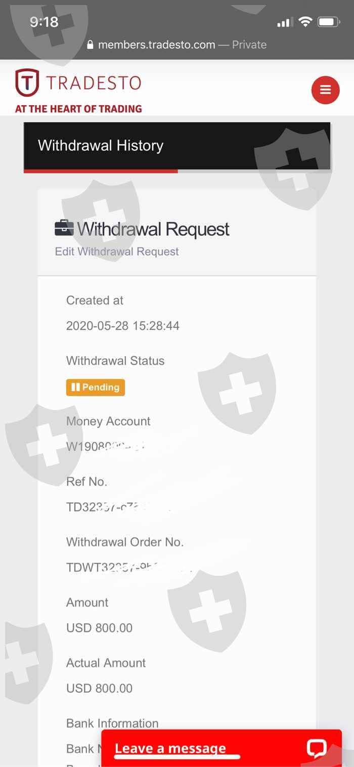 28/5/2020 出金提交已经1个多月了 Tradesto还在审核 不知道到底他的account team有没有在工作。发电子邮件询问一直得到一样的回复 说明正在审核。。。到底出金要花多长时间。。。