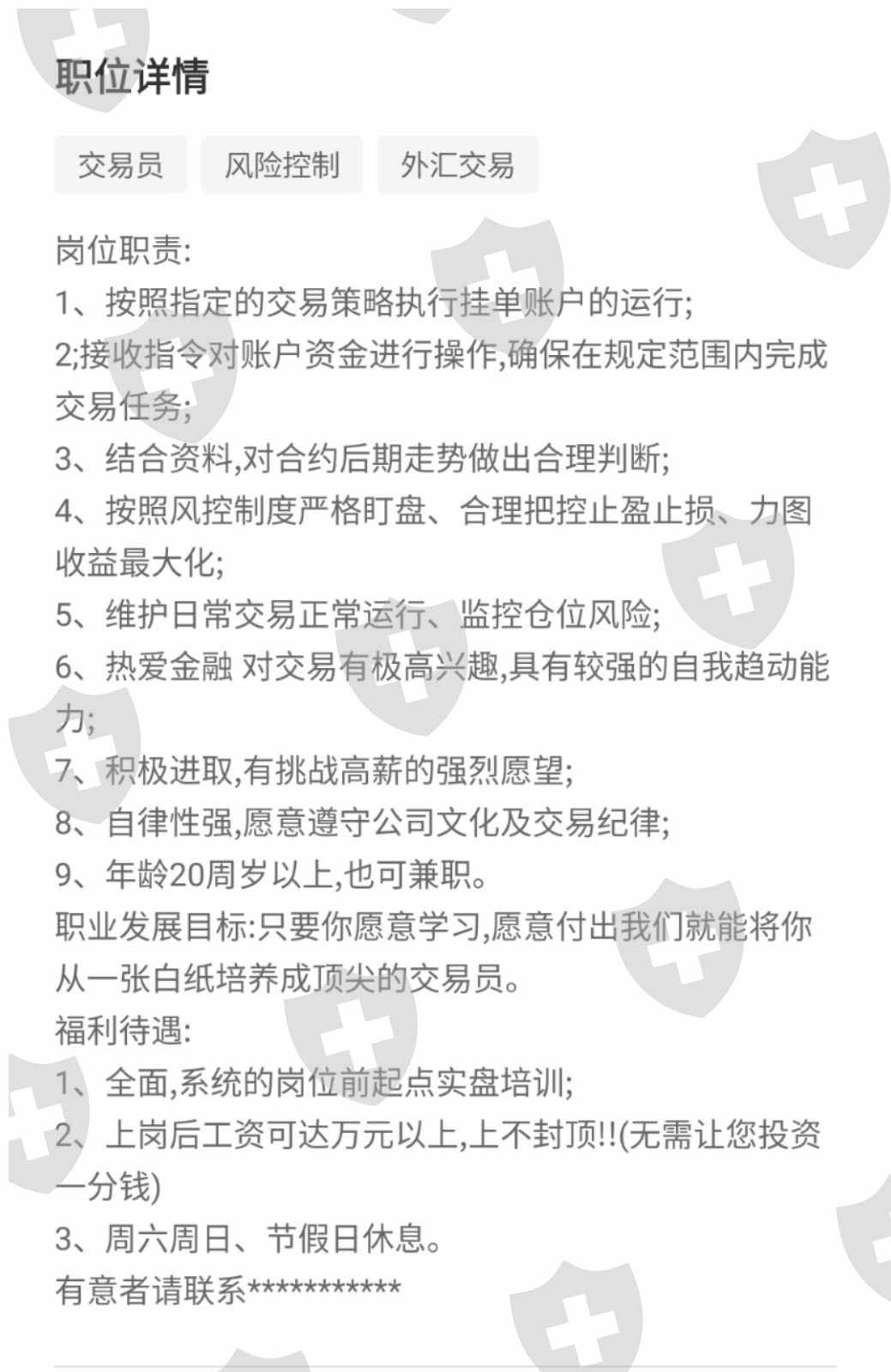 我是几个月前看到招聘网站上面的内容去的,以为换个高端一点的行业和金融沾边能过得好一些,懂得不多勤快一些边学边做也还有希望。开始去的时候是奔着培训结束以后做一个交易员,说是每个月最低工资都有八千块,想想都够满足了。但是现实的结果告诉我没有那么好的事情。一切的一切都是套路。开始的时候老师确实很热情讲解软件下载安装,每一步的操作步骤,很是详细可以说是无微不至,我以为我找到了归属所有人看上去都是那么的有希望,学了一两周之后发给我一个考核账号,三个月的考核期通过了就能做交易员,就有工资底薪了。接下来我就按照老师教的开始做下去,这两三个月我废寝忘食的去做单,恨不得不睡觉一直盯着屏幕给出进场信号,等信号来临的时候惊喜万分,但是不知道为什么做的单子就是亏的单子比较多,就是赚不到钱。而且这几个月我是没有任何收入的,还幻想着快通过考核赚大钱。无奈的我开始怀疑自己从自身找原因,以为是我对技术指标掌握的不够纯属,结果发现,大家都不赚钱,别说三个月的考核了,就连一个月中能达到考核要求的人都没有,而且交易要求很苛刻和严格,开始的时候以为这是好事,以后避免造成大失误就不好了,不同品种的交易手数不同,固定的止盈止损不同,每周还有交易频率,做多了不行,做少了不行,亏多了不行,隔夜不行,止损特别小很容易就被打出局,现在想想所有的苛刻和严格就是为了让我们通不过考核,什么后面的8000元底薪,后面让客户跟我们做的单子都是谎言。后来就说可以带朋友来做,这样无论盈亏我们都有手续费赚。这才发现他们的真实目的,说白了就是割韭菜。现在想想也是大部分来应聘的都是新手,培训一两周每天培训两个多小时,然后就能上线做交易员,后面跟一个20万美金的账户,如果我有140万人民币我是不会交给一个才学了两周然后练习两三个月的小白来操作的,你说是客户傻?还是平台傻?在我看来还是我们最傻,痴人说梦,轻信了他们说的话。只看到每天老师发在群里面的大额盈利记录,红了眼。研究了一段时间才发现这个平台都是不正常的,我也对比了别的平台点差是他们的一两倍以上,而且每1手交易还要单独再加手续费,平台就一个服务器,我们考核用的是模拟吧,但是你不说模拟也很难看出来,软件左上角没有提示模拟号,服务器下面是小黄人,而且还没有任何监管,交易软件也超级卡,公司说他们是这个willking平台的中国区总代理,但是实际公司里面的人就两三个,其余的都是和我一样是招聘来的,现在想想不就是皮包公司么,还总代理,我怎么这么傻。这两三个月的时间没赚到一分钱,就算花时间买教训了吧,毕竟是我不懂这行,以后也不接触交易这行了,还是老老实实的打工吧。