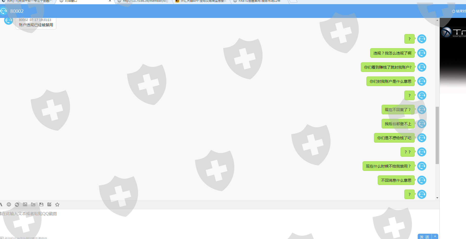 账户盈利后被无故禁用。客服就说违规并不处理,也没有说出哪里违规