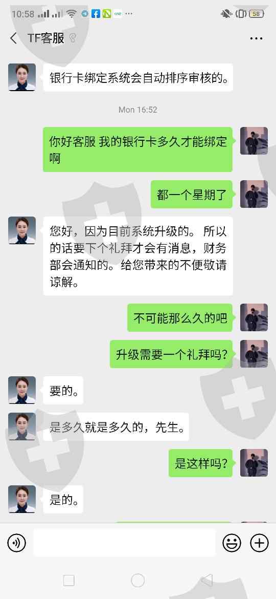 入金了根本无法体现,说需要绑定银行卡,不过绑定了一个星期多还在待审核。联系了客服客服给的回复是系统维修,问了多久客服就回答说要多久就多久。后来,网站就不能用了。根本就是个骗局