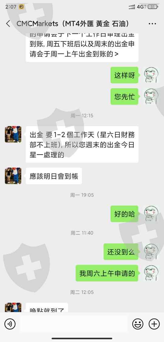 无法出金,一直在拖到账时间,之前说上午出金下午就能到账,我周六申请的,今天周四了