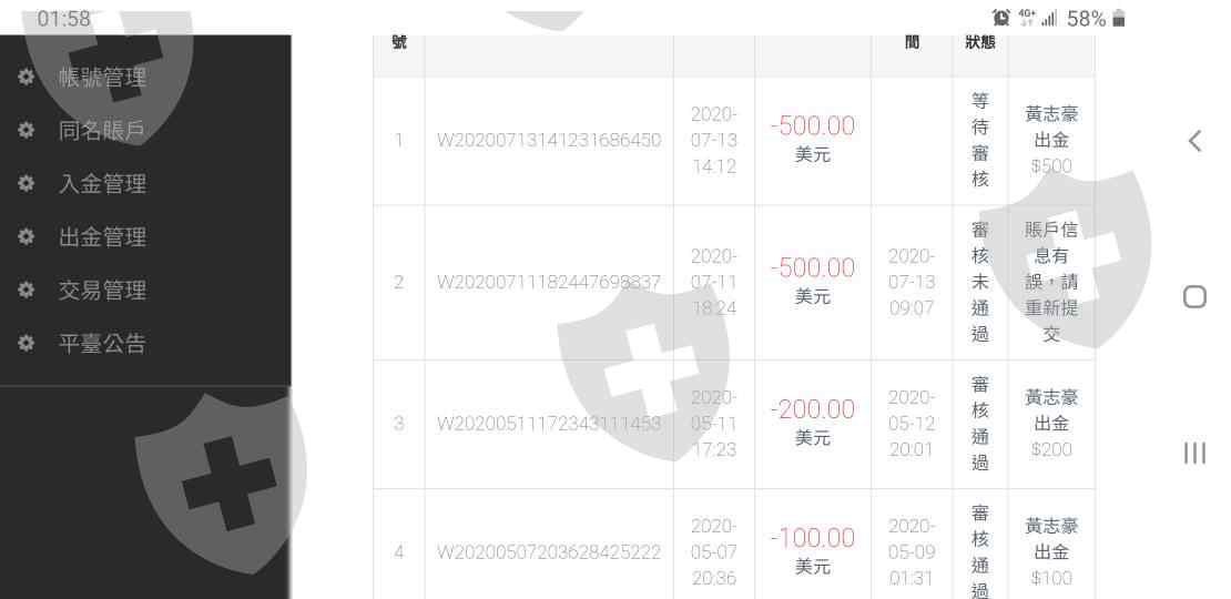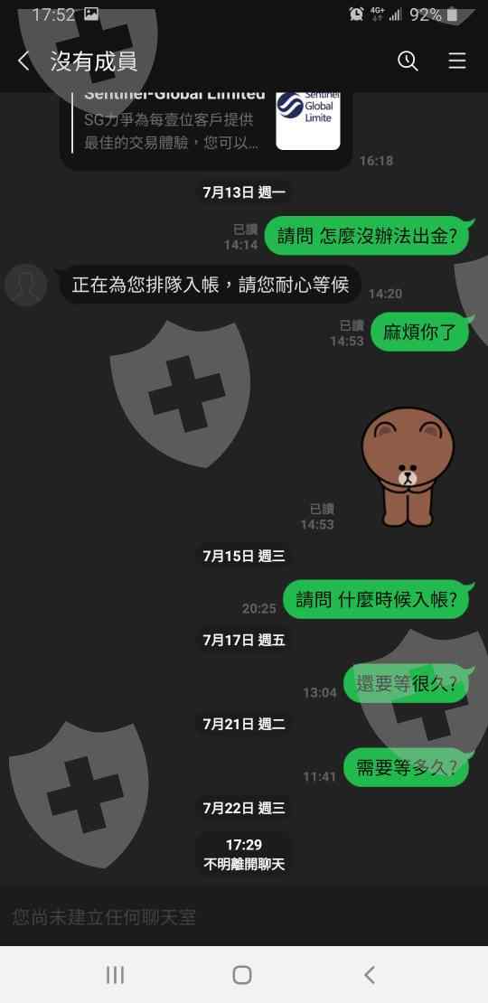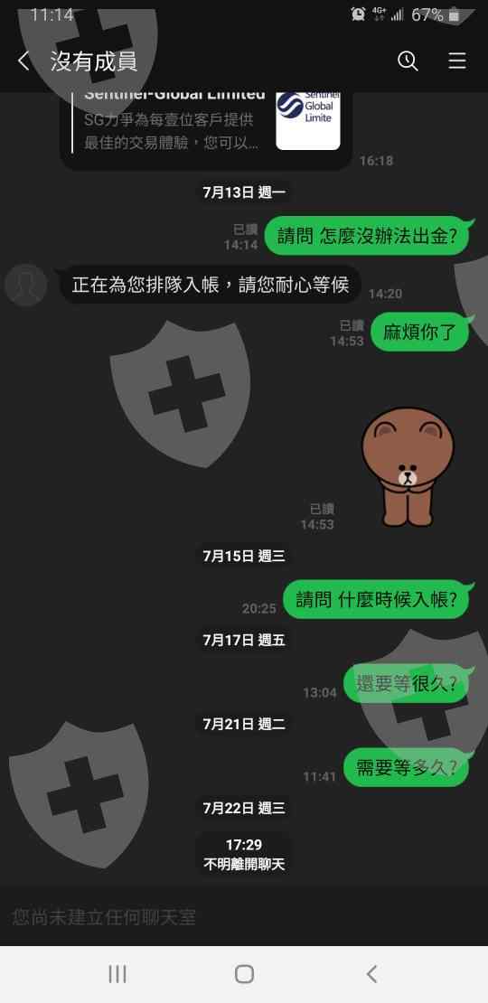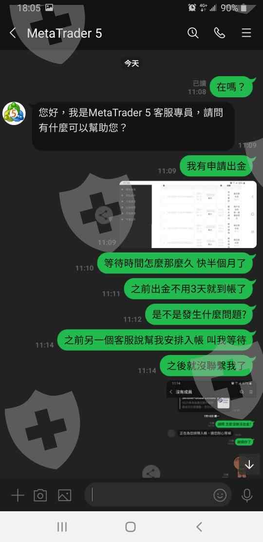 109年7/11出金帳戶訊息有誤讓我感覺怪怪之前5/7~11還可以出金我就問客服叫我等7/22LINE就刪除好友等到現在7/28找到其他也是一樣說到要出金就不理會