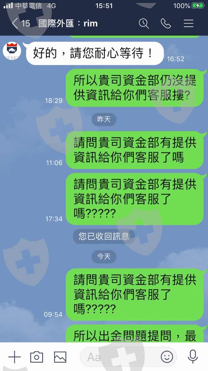 7/13申請出金,但一直未出,7/27~7/30詢問Line客服只會回請耐心等待後就給你不讀和不回,請想做外匯的留意此公司,以免當下一個受害者