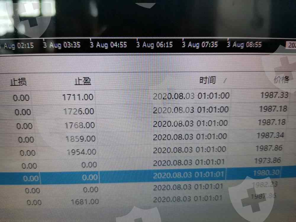 本人交易账号在2020.7.31周5的结单中是516.98美金,持仓0.11手,其它的均是锁仓,当时结单的点差已放大到100个点,如果是正常的点差,账号结单应该就是在620美金左右。这已经很过分了,没想到8.3号01.01早上开盘平台直接先是把我的空单在最高点全部强平,因为有的是锁仓,把空单平了,然后导致在8.3.01.01.01下一秒多单穿仓,导致-272。早上开盘按最高点算1987.13。持仓是0.11手,当时的结算价是1975.38。1987.13-1975.38[3d]11.75美金*0.11手[3d]129.25美金。按周五结算净结516.98-129.25[3d]387.73美金净值,这个还是按点差100点来算的净值,但是欧福市场直接把账号拉爆,穿仓,到-272美金,387.73+272[3d]659.73美金,这659.73美金去那里了?明摆着随意侵占交易者的资金,为什么其它的平台就没有这么夸张的点差,欺负弱势交易者。而且7.14号挂了1791的多单,当时最低点是1790.38。单子没有成交,客服一直说黄金的点差就是2,那次又说是点差放大,黑平台,因有字数限制,还有几次挂单没有写出来大家不要上当
