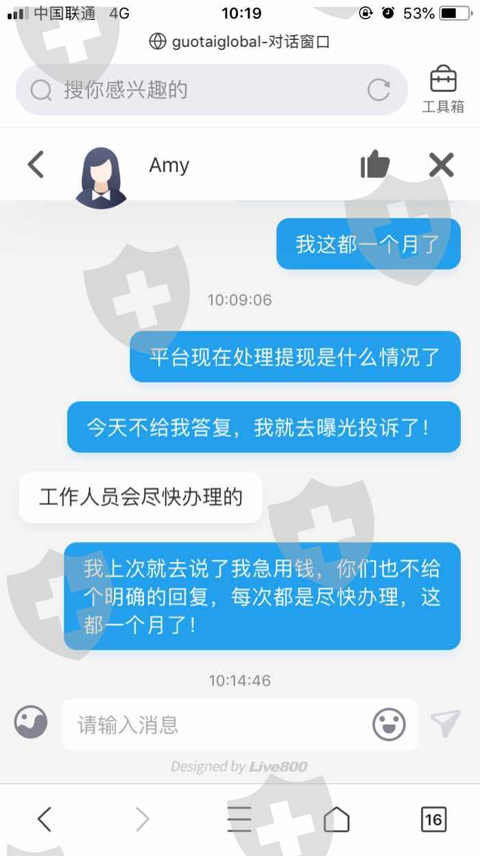 国泰环球平台一直不给出金!提现一个月都还没处理!