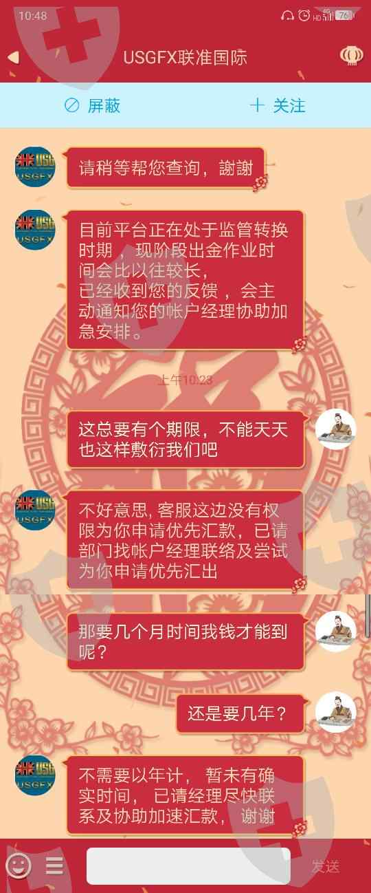 出金一个月,资金也不到,客服每次答复都是:在转换阶段出金会比平时时间较长。但是现在出金时间已经超过平时十几倍了也没见资金到账。总是这样敷衍的答复,得不到解决。