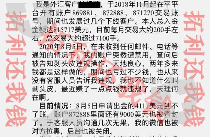 拓利,请做个良心的交易平台,把我账户的资金还给我