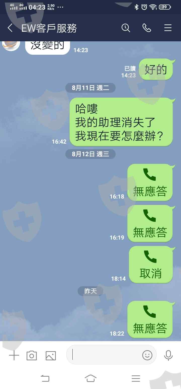 ew高級分析助理 Man,找不到人之後直接給你退line,現在客服也找不到人,按出金只是按辛酸的。入金快3萬裡面還包含貸款,我現在都不知道怎麼辦