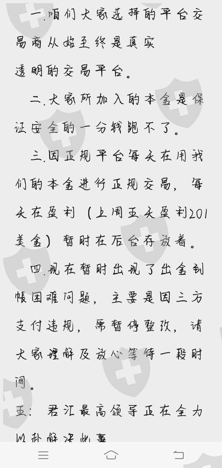 君汇一直说在对接第三方支付,我看网上说黑平台都是这样,拖着拖着就啥也没了。。我只想出我的本金