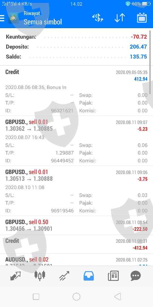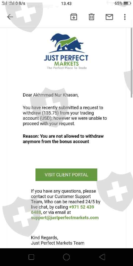 saya deposit 200 dolar lebih di akun saya dengan iming2 ib dapat 200 persen bonus deposit. dan saya untung hampir 200 dolar. lebih parah lagi sisa akun saya 130 yang tanpa bonus lagi saya ingin menariknya. karena saya belum pernah menarik keuntungan di akun ini sama sekali dan dari broker menolak permintaan saya. akun saya di mt4 di blokir. dan lebih parah lagi akun saya di portal dihapus permanen. broker tidak memberikan penjelasan sama sekali. ini broker scam