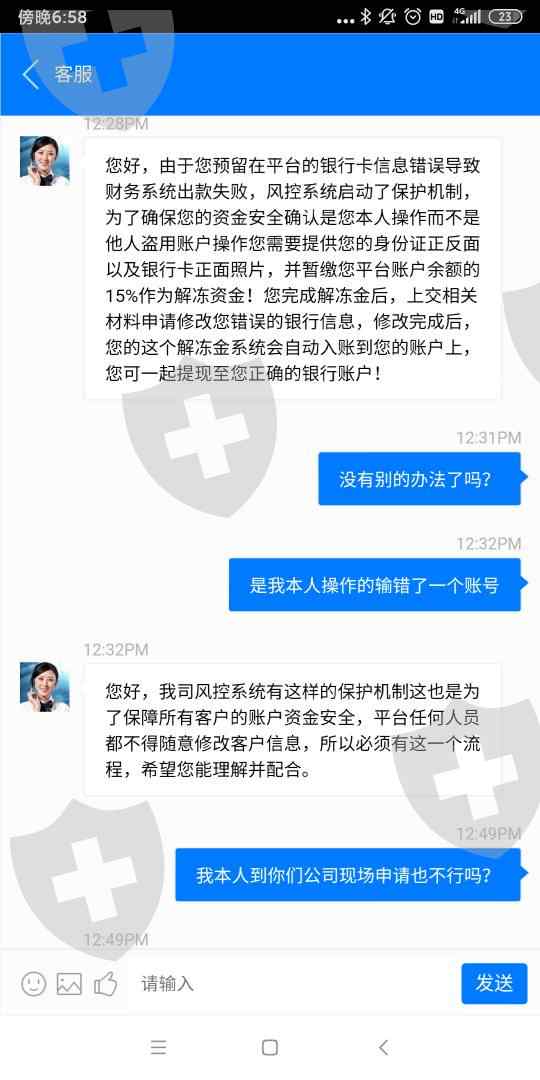 无法出金客服说是银行卡信息错误,需要暂缴解冻资金,是账户盈利的部分的百分之十五。就是套路骗钱的!