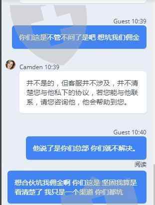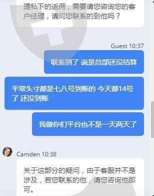 答应给我的头寸不反,一开始说的好好的,平常佣金七八号就到账了,现在十七号还没到账,一拖再拖,坚固环球太黑了,找客服,客服就是找理由不解决,