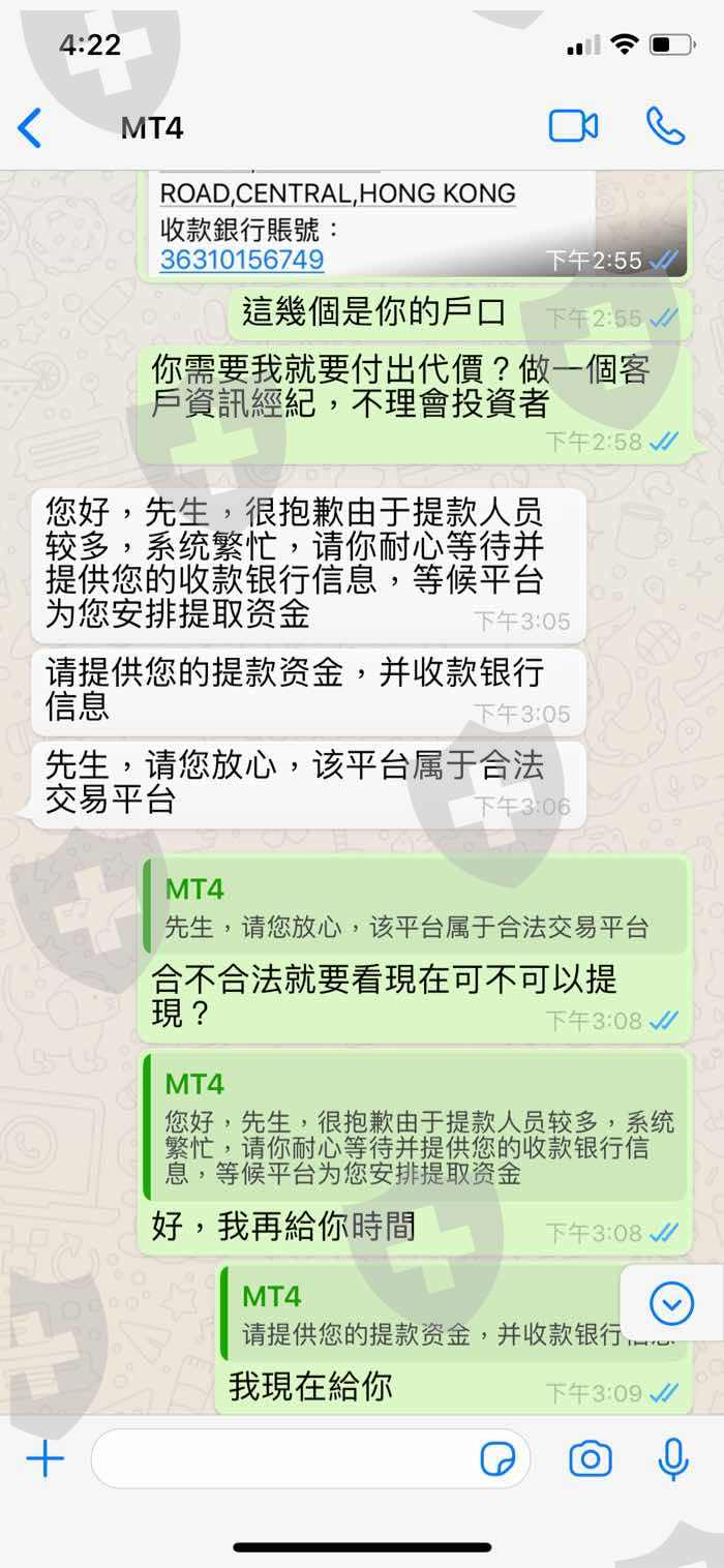 這個人說他投資外匯,說他親屬在控股做高官,他說可以收到內幕消息,跟他投資好幾次是賺的,我嘗試過出了一次金,之後再出金客戶平台說了好多次系統維護,到了今次出5000美金,客戶平台說已經辦好了出款,但我查看資金沒有到我帳戶,客戶平台同這個人之後一起失蹤了,這個人說過自己提款過1,000,000美金,說這個平台沒有問題!