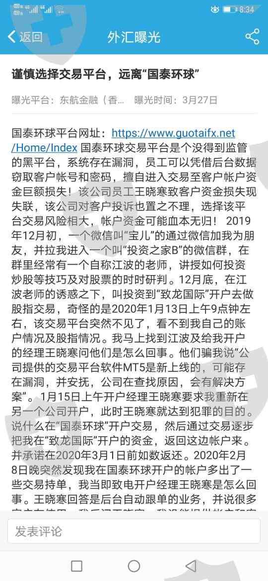 “国泰环球”是个无监管的黑平台;开户经理王晓寒利用平台漏洞盗窃客户资金!